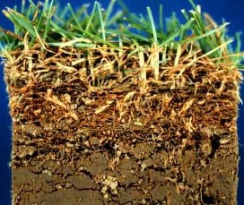 Thatch is a build up of rhizomes and stolons between the crown of the grass plant and the root. Grass clippings left neatly on the lawn do not contribute to thatch build up. (see “mowing”). Some thatch is necessary a nd advantageous to maintaining a healthy lawn. When the thatch becomes thicker than ½ inch it is detrimental to the health of the lawn. Thatch tends to become hydrophobic as it thickens, actually repelling water and nutrients needed in the root zone. Heavy thatch is also a breeding ground for detrimental insects such as chinch bugs and sod web worms. A heavy thatch layer can impede the movement of insecticides into the soil for the control of soil inhabiting insects such as grubs.